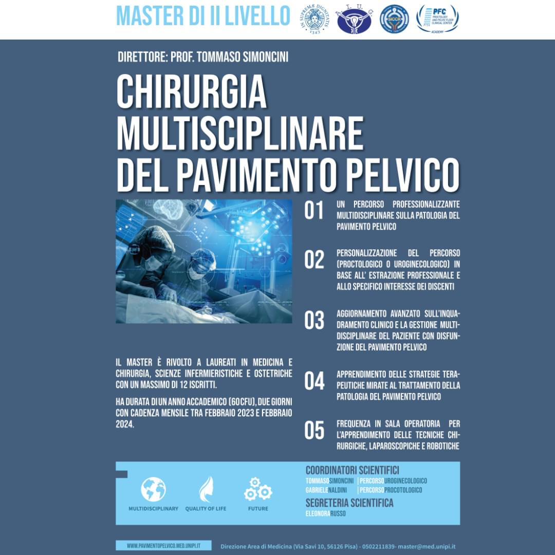 Il Master in Chirurgia Multidisciplinare del Pavimento Pelvico fornisce un percorso professionalizzante multidisciplinare sulla patologia del pavimento pelvico.